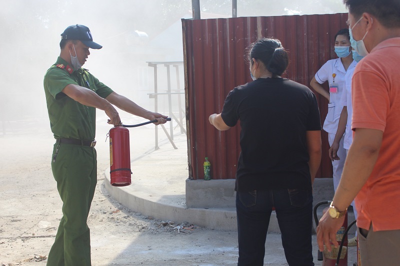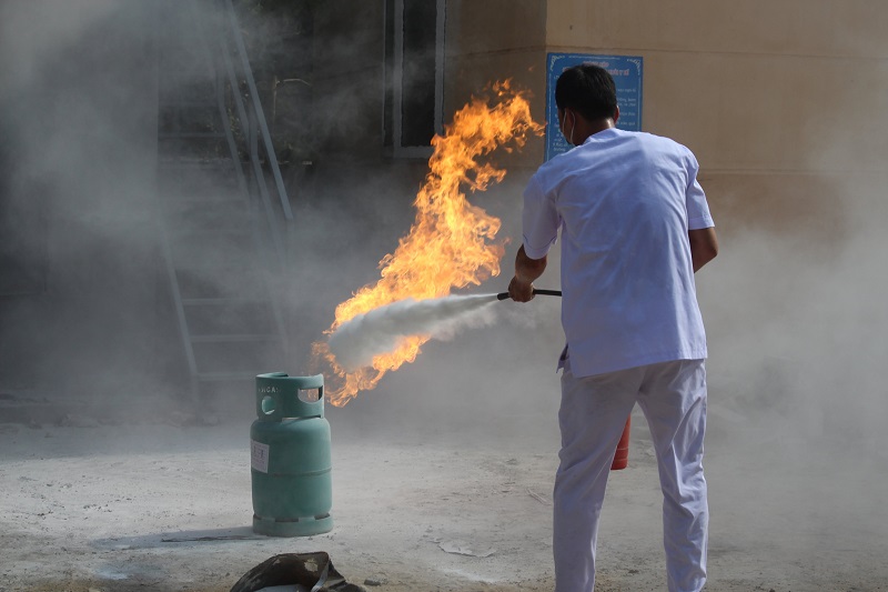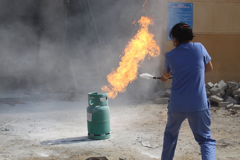 Lớp học lý thuyết PCCC và CNCHỞ phần thực hành, các cán bộ y tế tham gia tập huấn được hướng dẫn thao tác sử dụng bình chữa cháy xách tay dập tắt đám cháy khi mới phát sinh; hướng dẫn cách sử dụng, vận hành các thiết bị chữa cháy được trang bị tại các tòa nhà cao tầng./.