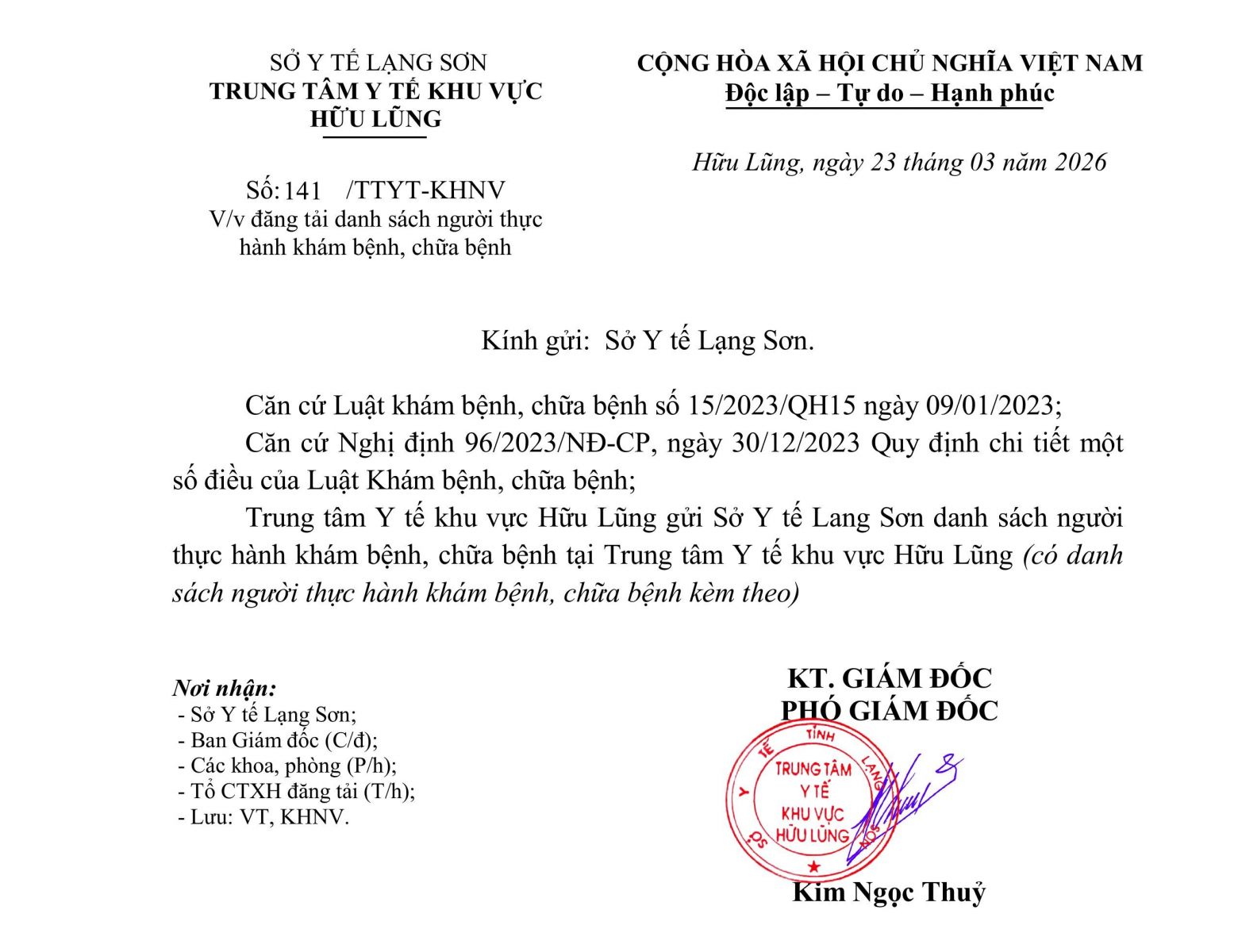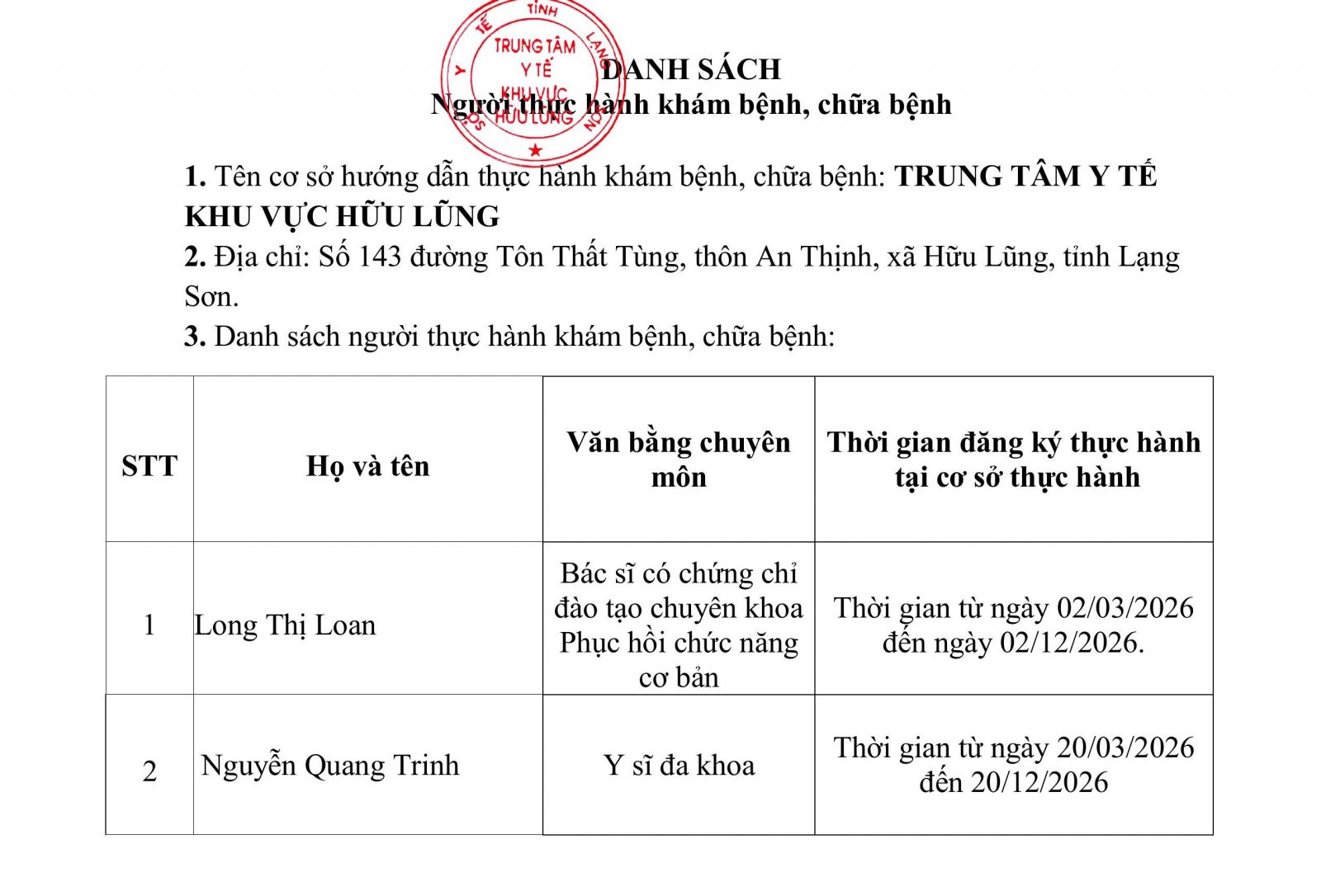 Danh sách người thực hành khám bệnh, chữa bệnh