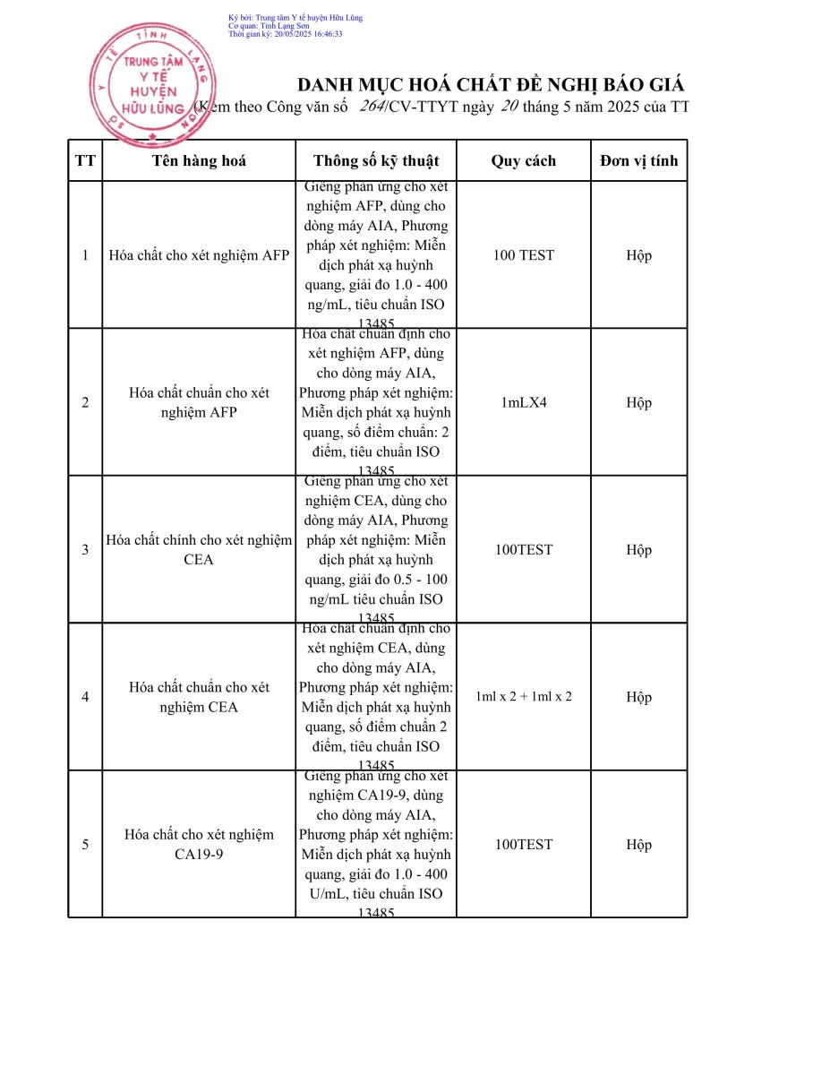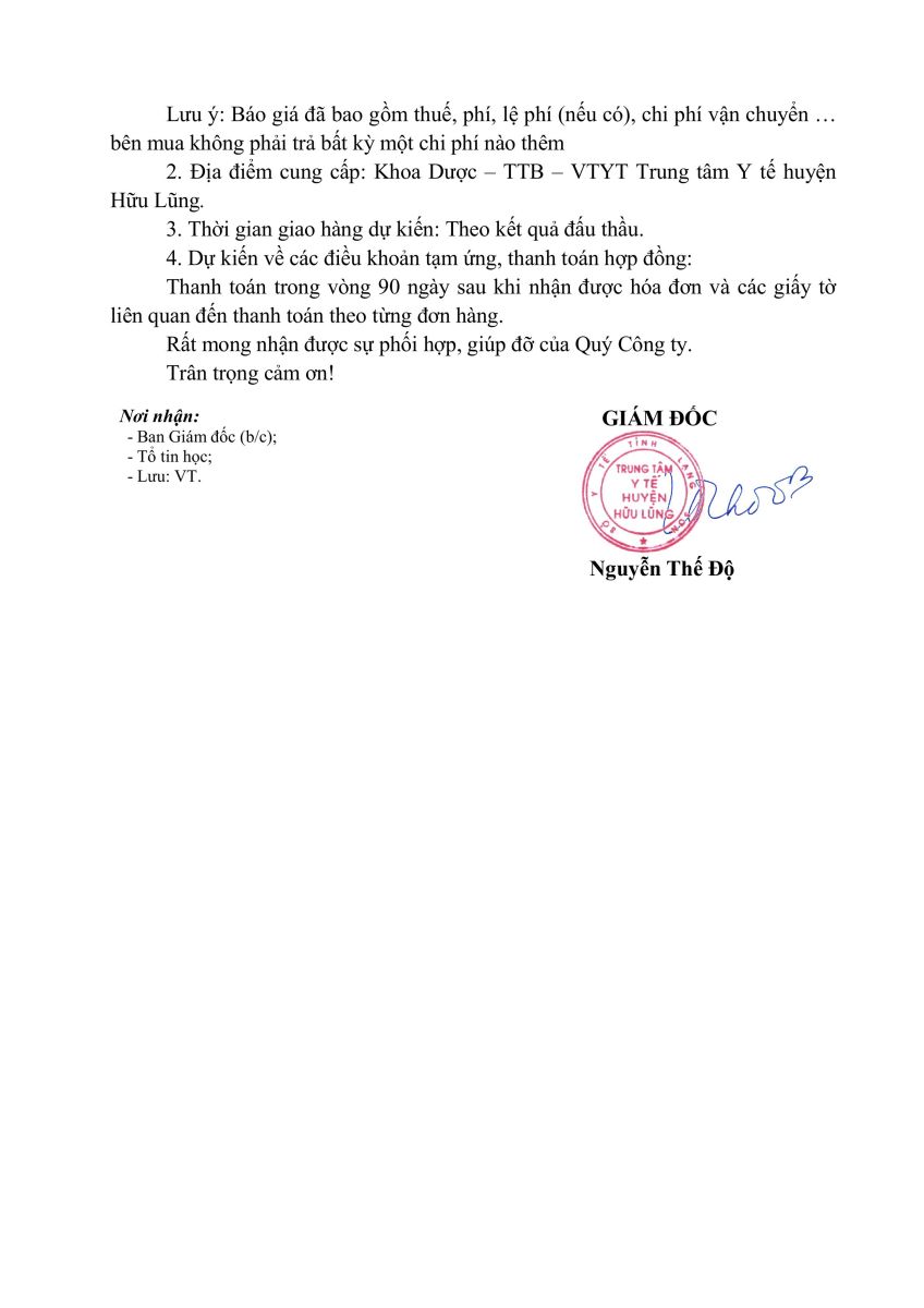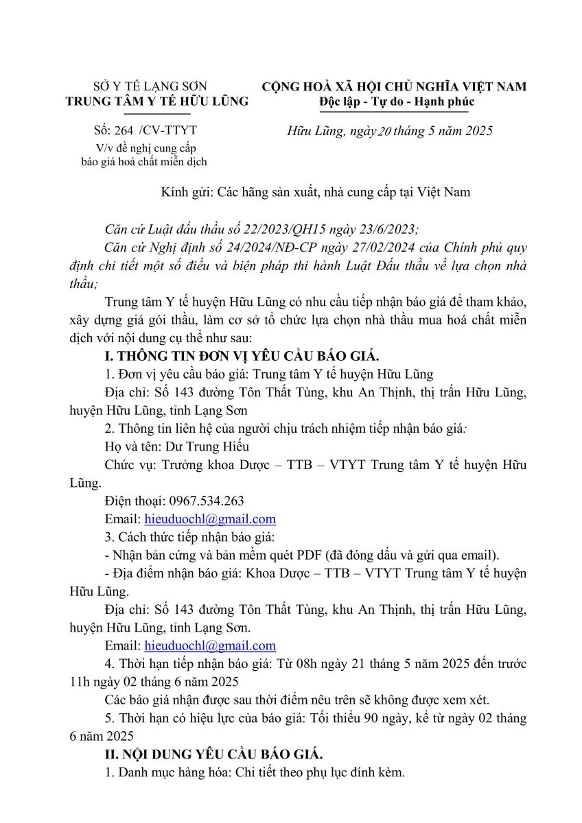 Thông báo mời báo giá gói thầu mua thiết bị văn phòng cho các khoa, phòng thuộc Trung tâm Y tế khu vực Hữu Lũng