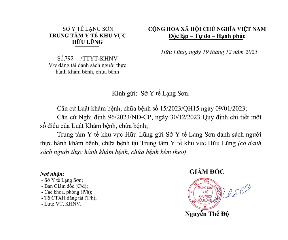 Danh sách người thực hành khám bệnh, chữa bệnh tại TTYT khu vực Hữu Lũng (Vũ Huy Hoàng)
