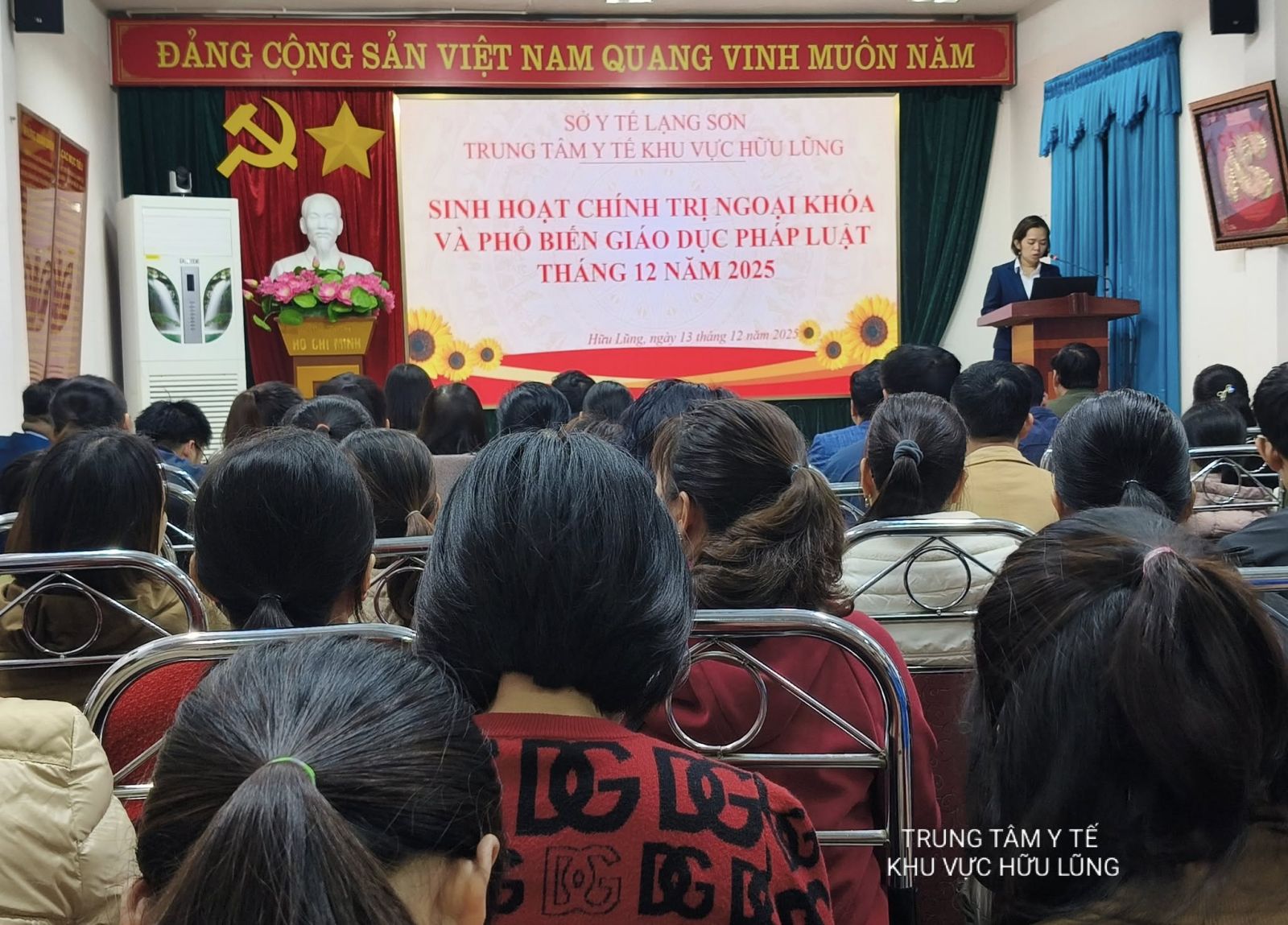 Ngày 13/12/2025, Trung tâm Y tế khu vực Hữu Lũng tổ chức buổi sinh hoạt chính trị ngoại khóa kết hợp sinh hoạt chuyên đề nhằm tuyên truyền, phổ biến các nội dung quan trọng về công tác chính trị, tư tưởng và giáo dục truyền thống cho đảng viên, viên chức và người lao động.