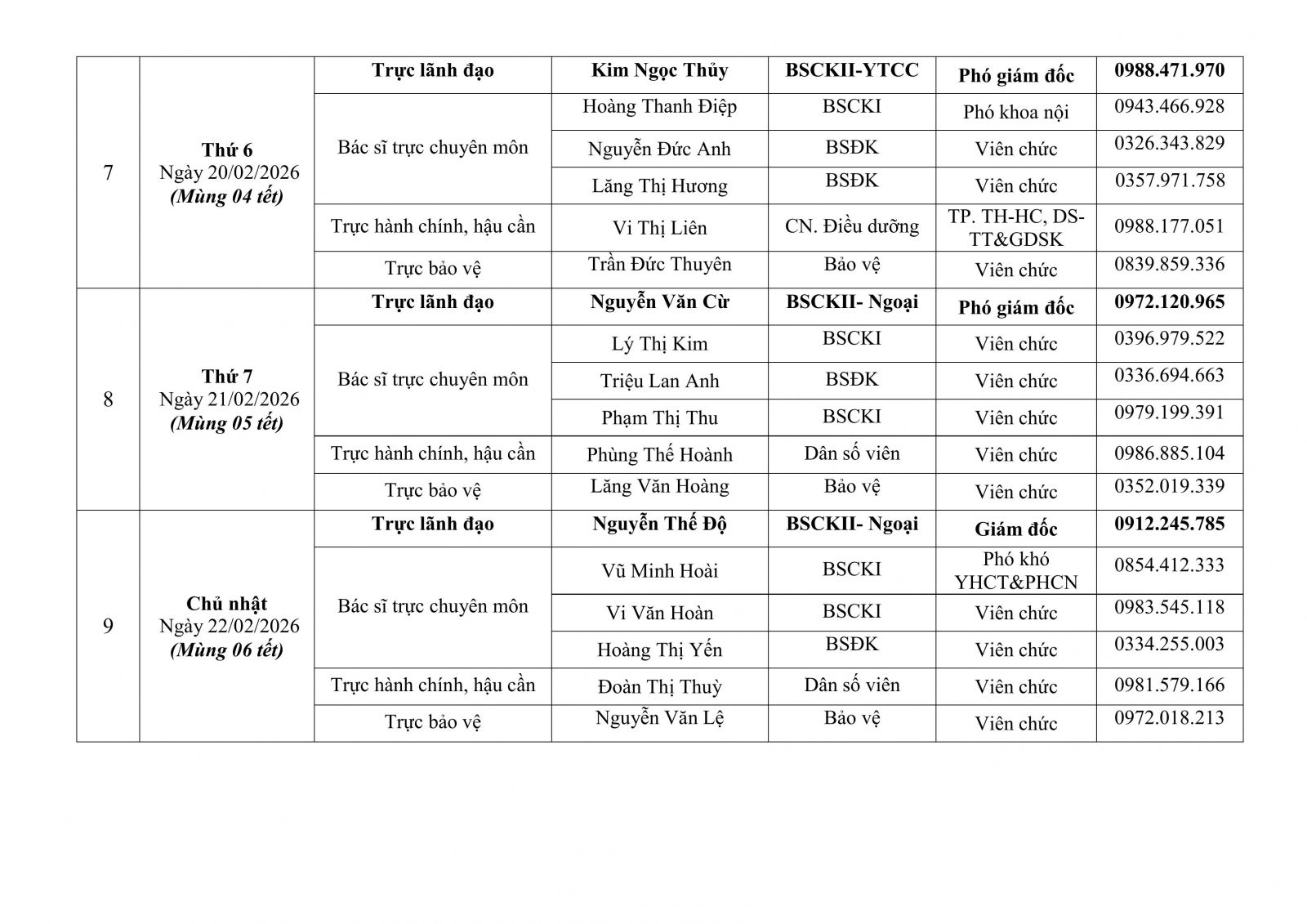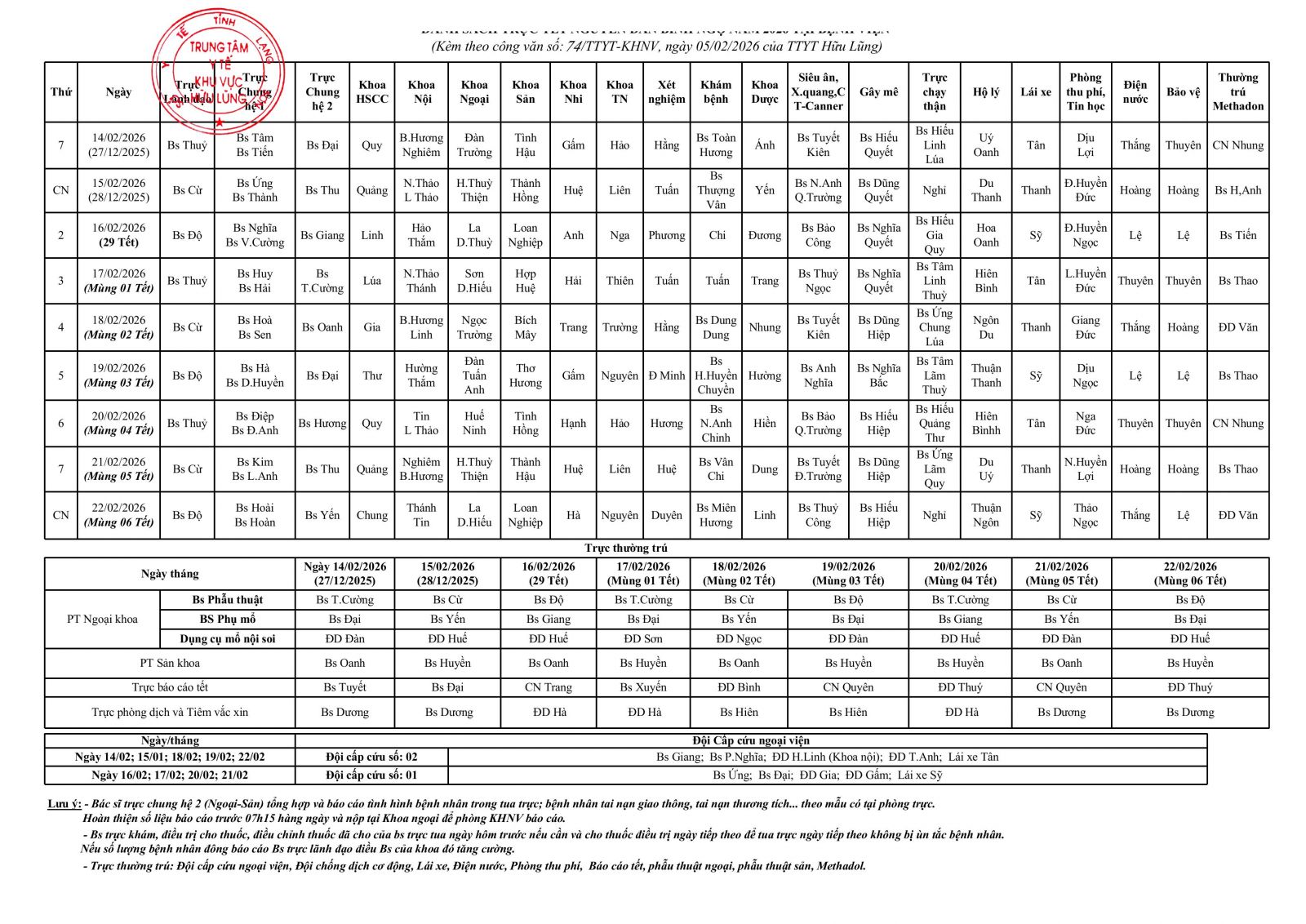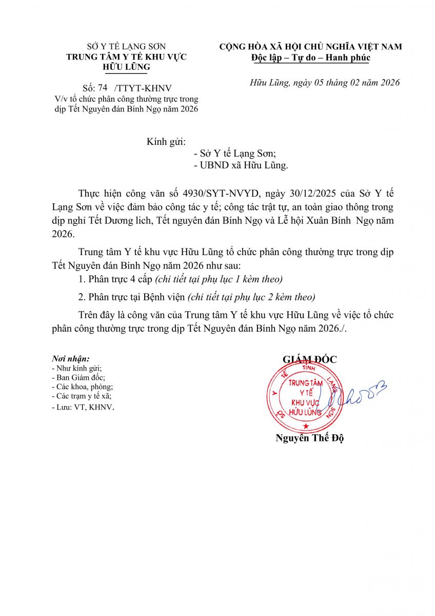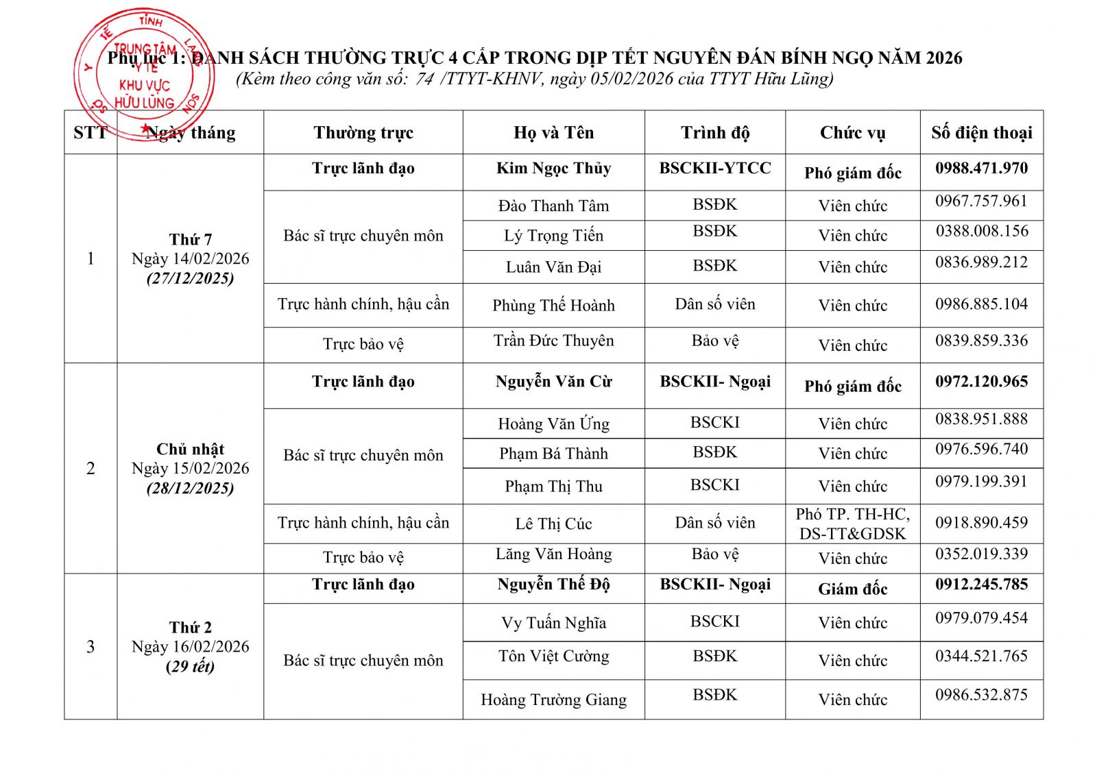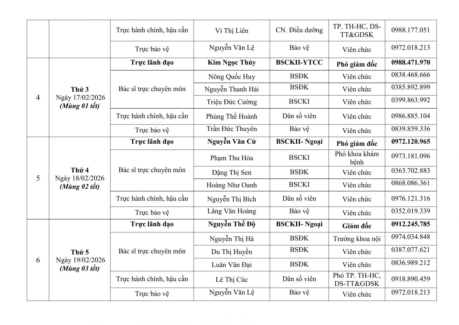 Thông báo lịch trực và tổ chức phân công thường trực trong dịpTết Nguyên đán Bính Ngọ năm 2026
